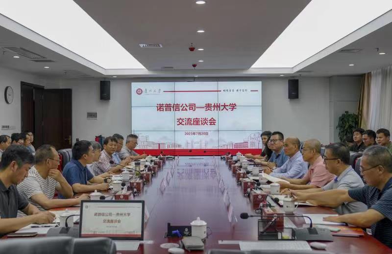 7月20日下午,诺普信公司到我校交流座谈,座谈会在西校区贤正楼202会议室举行,我校校长宋宝安院士、诺普信公司董事长卢柏强出席会议,双方相关部门负责人参加会议,会议由我校绿色农药全国重点实验室常务副主任吴剑主持。