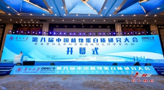 7月28日,由中国植物学会指导,贵州大学和中国生物化学与分子生物学会蛋白质组学专业委员会联合主办,贵州大学生命科学学院等单位承办的“第八届中国植物蛋白质研究大会暨首届贵阳生命科学新高地顶尖科学家论坛”在贵阳国际生态会议中心隆重召开,会期四天。来自国内外约260家高校、科研院所,40余家企事业单位,共2100余人参加了本届大会。中国科学院院士匡廷云、种康,美国科学院院士邓兴旺、朱健康,我校党委书记李建军、副校长陈祥盛出席大会开幕式。开幕式由陈祥盛主持。