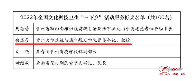 近日,中央宣传部印发通知,公布2022年全国文化科技卫生“三下乡”活动示范项目、优秀团队、服务标兵名单。我校建筑与城市规划学院党委书记、教授余压芳获全国文化科技卫生“三下乡”活动服务标兵称号。