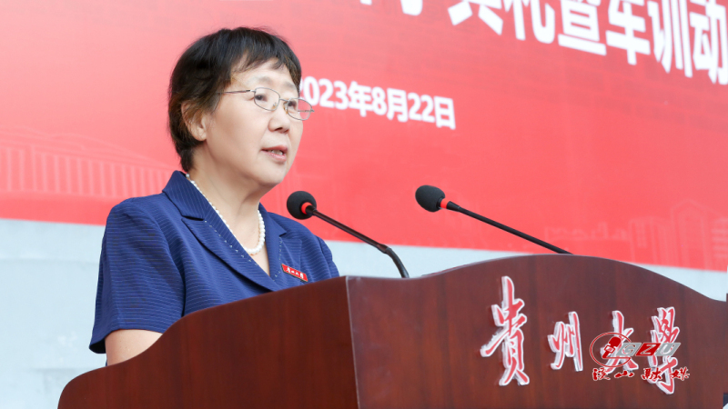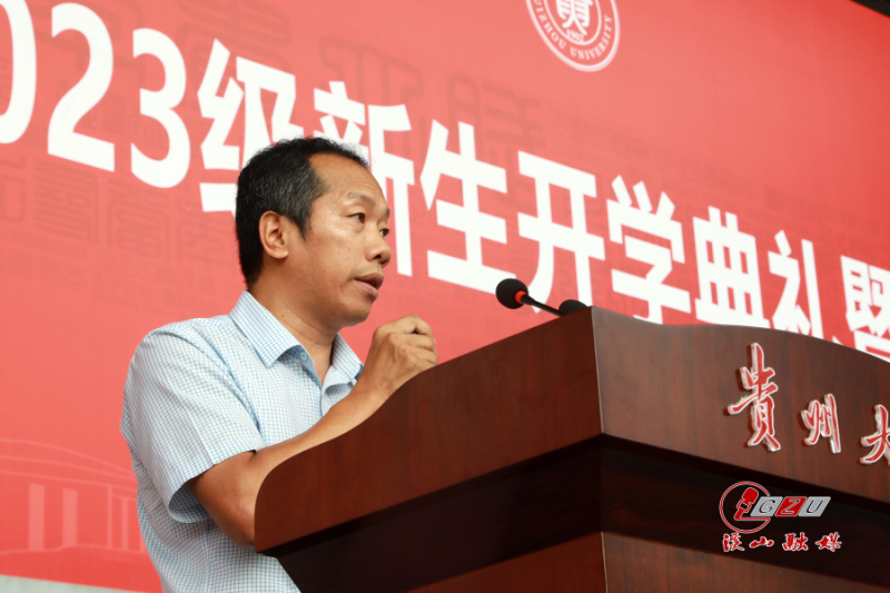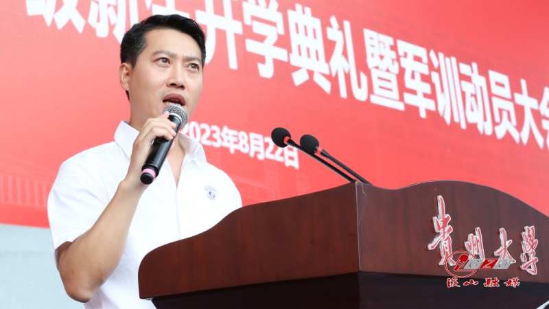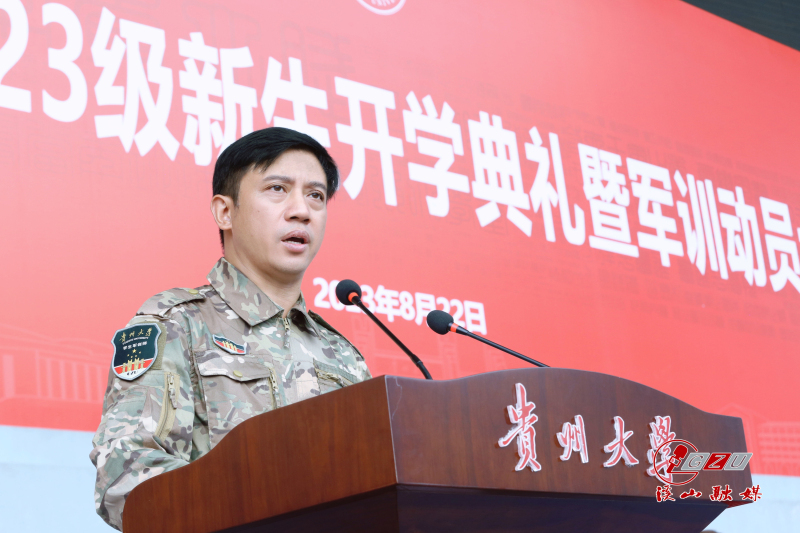 开学典礼后,举行军训动员大会。校党委副书记、军训师政委骆长江宣读《中共贵州大学委员会关于成立2023级本科生军训师的通知》。