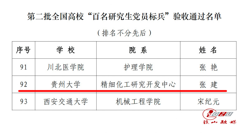 近日,教育部办公厅公布第二批全国高校“百个研究生样板党支部”和“百名研究生党员标兵”验收通过名单,我校精细化工研究开发中心2019级博士研究生、全国高校“百名研究生党员标兵”张建通过验收。