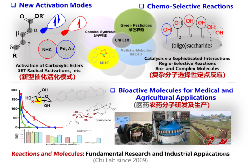 近日,贵州大学绿色农药全国重点实验室池永贵教授团队在国际重要学术刊物《自然子刊(Nature Communications)》报道了两项工作,团队致力于在有机催化合成和绿色农药研发生产领域开展原创性工作(图1)。在池永贵教授与郑鹏程教授的共同指导下,绿色农药全国重点实验室硕士生范国栋与博士生王青云等发表论文“Carbene-catalyzed chemoselective reaction of unsymmetric enedials for access to Furo[2,3-b]pyrroles”,绿色农药全国重点实验室博士生王青云、吴树权等发表“NHC-catalyzed enantioselective access to β-cyano carboxylic esters via in situ substrate alternation and release”。论文以氮杂环卡宾NHC为关键仿生催化剂,通过对不同类型化学选择性的调控,实现了反应位点及反应路径的精确控制,构建了手性非天然氨基酸及呋喃吡咯类医药农药活性分子。