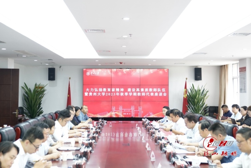 大力弘扬教育家精神,建设高素质教师队伍。9月15日上午,贵州大学2023年秋季学期教师代表座谈会在西校区贤正楼311会议室举行。校党委书记李建军、副校长周少奇、张大林、陈祥盛出席会议,相关职能部门主要负责人、教师代表参加会议。会议由张大林主持。
