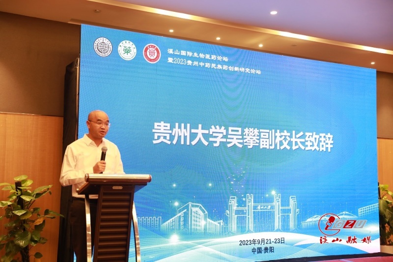 9月22日,由贵州省科学技术协会、贵州省药学会、贵州大学联合主办,贵州大学药学院承办的“溪山国际生物医药论坛暨2023贵州中药民族药创新研究论坛”在贵阳市花溪区举行。贵州省科学技术协会副主席杨泳滨,我校副校长吴攀出席会议。