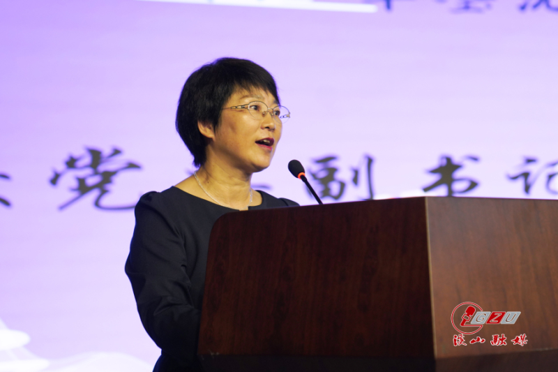 令狐彩桃致辞。她历数退休教职工在岗位上奋斗的点点滴滴,代表学校和全体师生对他们的辛勤付出表示崇高的敬意与衷心的感谢。她表示,教职工荣退仪式要成为贵州大学尊师重教、凝心聚力的新举措、新传统。希望通过这一仪式能让荣退教职工有仪式感、归属感与自豪感,也希望新进教师积极向前辈学习,紧握“接力棒”,跑出“好成绩”!
