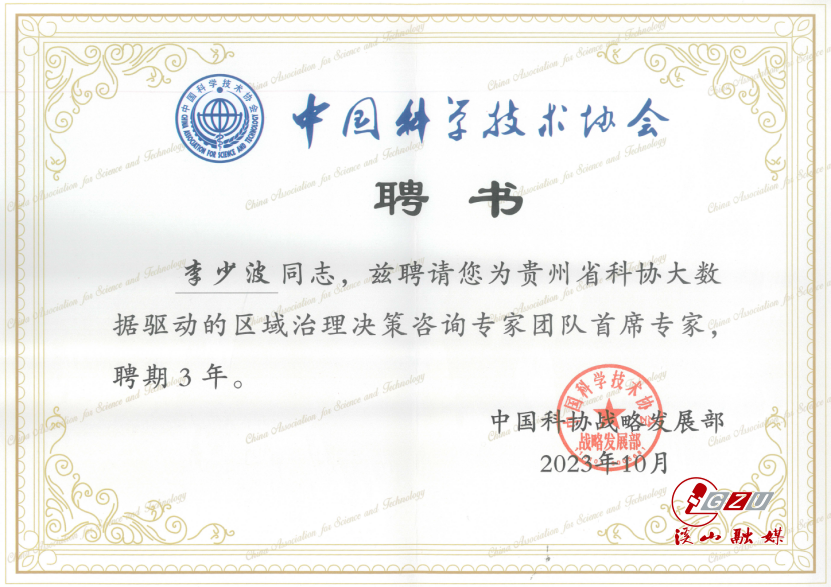 贵州大学“大数据驱动的区域治理”团队入选中国科协决策咨询专家团队