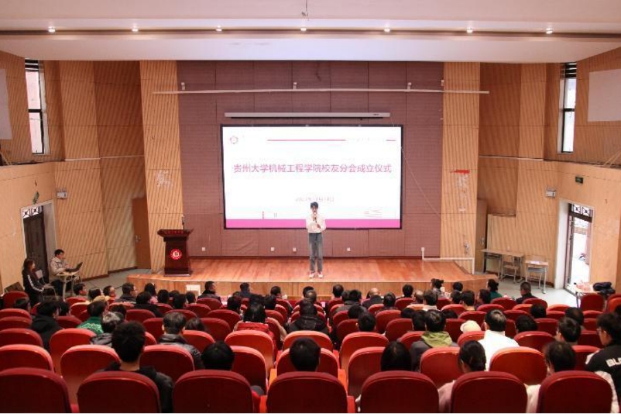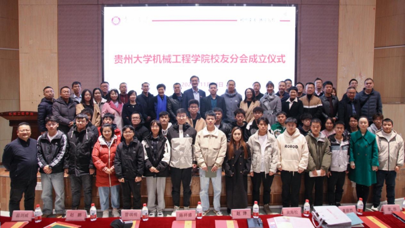 11月14日下午,贵州大学机械工程学院校友分会成立仪式在贵州大学机械工程学院圆形报告厅隆重举行。贵州大学副校长陈祥盛、校友总会副秘书长赵鹏、贵州大学机械工程学院原党委书记管琪明,机械工程学院党委书记滕召华、院长赵津、正处级组织员董蔚然、党委副书记廖烨、副院长李家春、教育部重点实验室常务副主任黄海松以及机械工程学院校友分会理事代表联想集团西南大区贵阳地区总经理温剑威、日立能源 (中国) 有限公司贵阳分公司经理曾礼、贵州尚玺建设工程有限公司总经理陈娅玲、山东江山无忧文化有限公司董事长吴兴琼、贵州永丽机械技术有限公司总经理姚必根以及部分教师和校友代表共同出席了此次成立仪式。机械工程学院学生代表林磊主持了会议。