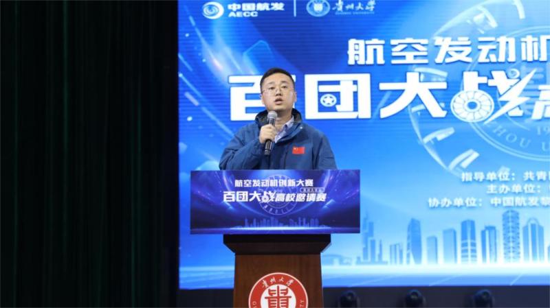 中国航发贵州黎阳航空动力有限公司团委书记赵广俊对此次高校邀请赛内容及赛程进行介绍。他表示,大赛以“集智聚心、产学联动,打造百千万行动计划”为目标,广泛集聚青年创新人才跨校企结合、跨区域结合,搭建航空发动机高端技术交流平台,打造聚力攻关创新引擎,有力助推航空发动机事业产学融合发展。