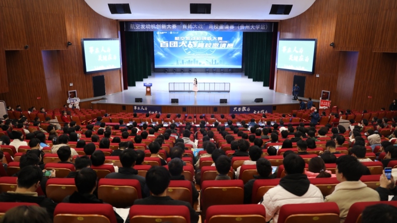12月6日,航空发动机创新大赛“百团大战”高校邀请赛(贵州大学站)启动仪式在贵州大学溪山剧场举行。中国航空发动机集团有限公司团委书记陈卫,共青团贵州省委副书记杨杨,校党委副书记令狐彩桃出席启动会,共青团贵州省委、省国防电子团工委、共青团贵阳市委、中国航发在黔单位相关负责人及贵州大学青年代表参加启动仪式。