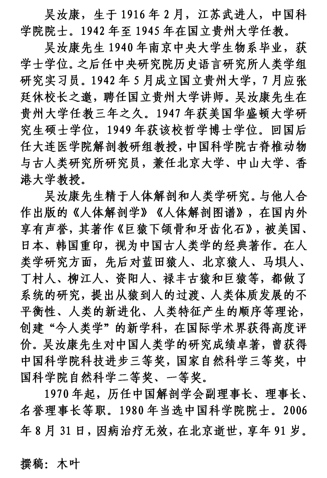 吴汝康院士