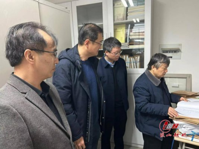 在马克思主义学院,宋宝安、陈祥盛听取了学院评建工作推进情况汇报,着重查看了学院教学文件和资料归档情况。