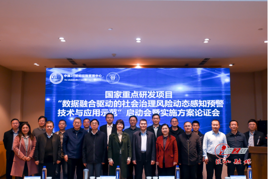 1月12日,贵州大学作为牵头单位的贵州大数据人工智能领域首个国家重点研发计划项目“数据融合驱动的社会治理风险动态感知预警技术与应用示范”项目启动会暨实施方案论证会在贵阳举行。来自中国 21 世纪议程管理中心(国家自然科学基金委员会直属)、贵州省科学技术厅、贵州省委政法委、我校的相关领导,以及特邀专家、项目组成员等40余人参加会议。我校党委书记杨未、副校长李飞参加启动会。