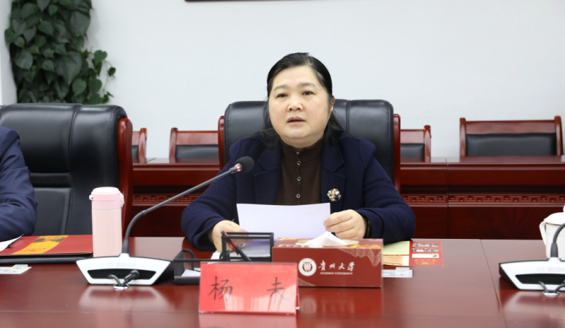 杨未在致辞中对陈华一行的到来表示热烈欢迎。她向与会嘉宾介绍了贵州大学的基本情况,尤其是矿业相关学科专业的建设发展。她表示,省能源局和贵州大学有着深厚的情感和良好的合作;未来,贵州大学将和省能源局勠力同心,加强人才培养、科研平台建设,共建学生实习实训基地,联合开展技术研发,进行创新产教融合协同育人的人才培养新模式,提升应用型人才培养质量和服务产业发展的能力和水平;希望在此次合作中,双方实现多方面、多维度的资源共享、共建、共生和共同发展,通过双方联动,加快推进“富矿精开”和“做强贵州大学”的同频共振。