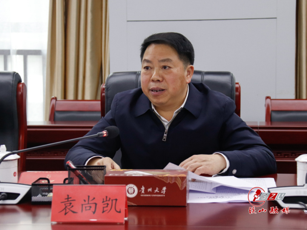 袁尚凯表示,感谢多年来贵州大学在人力、物力、财力、智力等方面帮助支持剑河县,实现了中国第十一枚和贵州省唯一一枚“金钉子”落地剑河。他对剑河县“金钉子”建设情况作说明,表示“金钉子”建设“八个一工程”正有序推进,目前已完成“编好一个规划”“护好一片山”“修好一条路”“打造好一个科普基地”四个项目,正在实施完成“树好一座碑”“扩好一个馆”“建好一个区”“守好一坝田”。对于项目实施过程中和下一步工作中可能遇到的困难,希望贵州大学能够大力提供支持和帮助。