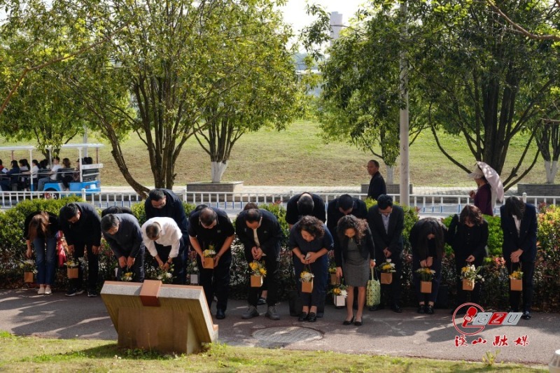 活动参与人员及罗登义教授子女在贵州大学崇学楼前,依次将手中的花篮敬献于罗登义教授塑像前,伍启林为大家介绍了罗登义教授生平事迹,全体人员鞠躬敬礼,表达对先贤的尊敬和深切追思。