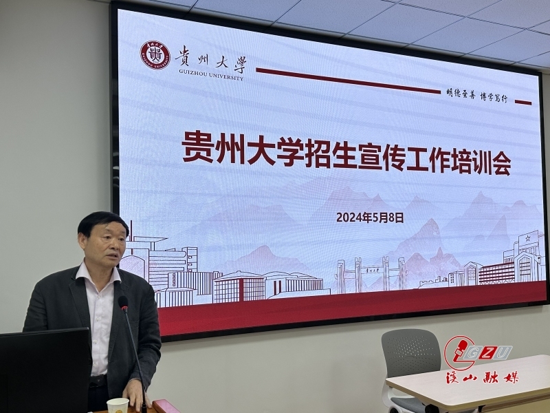 5月8日上午,贵州大学招生工作宣传培训会在东校区韵正楼举行。培训会由校党委副书记骆长江主持,人民网原总编辑余清楚作专题培训。校党委宣传部、招生就业处、各学院分管宣传工作相关负责人、有关工作人员共80余人参加培训。
