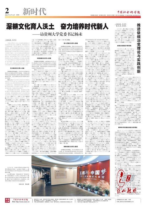 当前,世界百年未有之大变局加速演进,中华民族伟大复兴进入关键时期,宣传思想文化工作极端重要。高校作为新时代人才培养的主要阵地,必须牢牢把握宣传思想文化工作的首要政治任务,切实担负起新的文化使命,在加快推进教育现代化的新征程中培养担当民族复兴大任的时代新人。近日,《中国社会科学报》记者专访了我校党委书记杨未,她表示,新时代新征程,学校将坚持以习近平文化思想引领宣传思想文化工作,勇担使命,守正创新,牢牢把握“七个着力”要求,扎实推进“价值塑造、能力培养、知识传授”三位一体育人体系建设,培育有志、有识、有为、有德的各类高层次人才,为谱写中国式现代化贵州实践新篇章作出更大贡献。访谈全文刊载在《中国社会科学报》2024年5月13日第2889期。