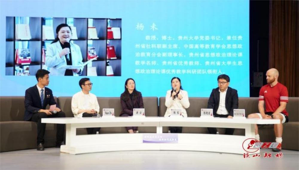 当天下午在东校区举办的一场生动的访谈式讲座上,杨未同人事处处长、哲学学院院长陈艳波,国际交流与合作处处长、北阿拉巴马国际工程技术学院院长洪云,英国伦敦城市大学国际合作伙伴发展主任Keyan Zhu及我校英国籍教师Geary David Patrick一道,与学生面对面,共话“贵州大学国际合作开新篇”。