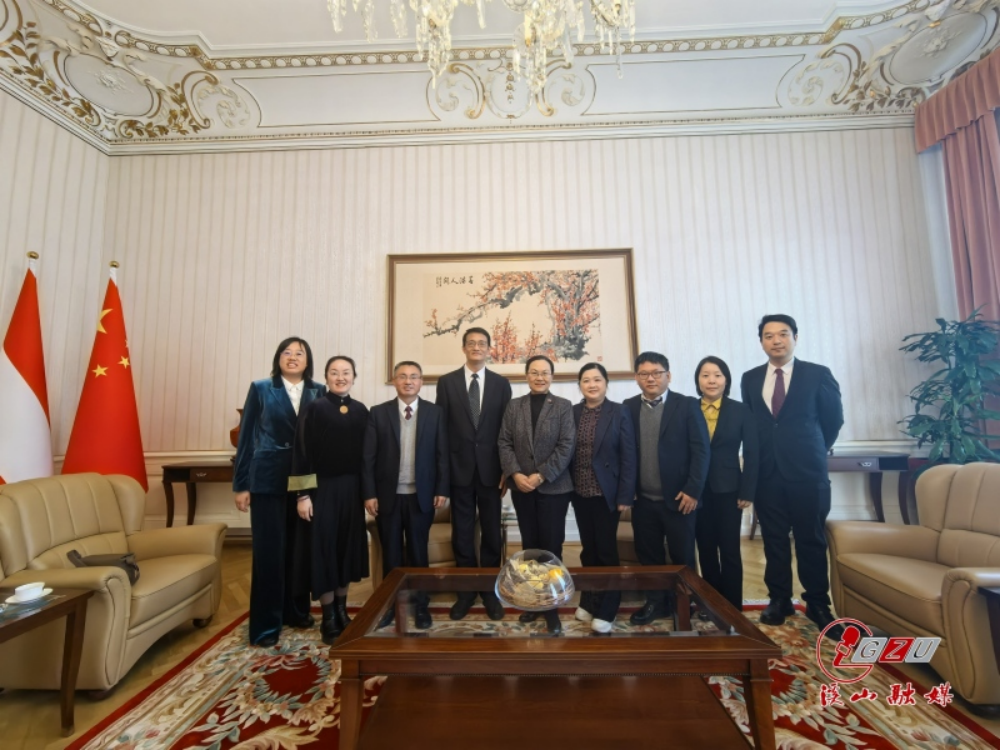 在奥访问期间,代表团拜访了我驻奥地利大使馆,亓玫大使表示,将大力支持贵州大学多渠道、多形式、全方位深化与奥地利教育交流合作。代表团一行还拜访了欧亚-太平洋学术协会沃尔夫·迪特尔·劳施主席。我校与欧亚-太平洋学术协会于2020年签订合作协议,为联盟成员单位,并在其中发挥积极作用。未来双方将继续巩固合作,加深友谊。代表团一行赴维也纳大学孔子学院、维也纳兽医大学进行了交流访问。