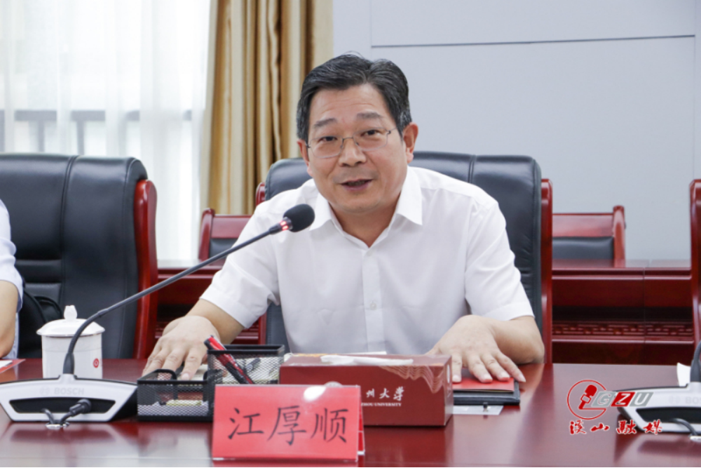 江厚顺介绍了长江大学相关情况和此行调研目的,他表示,此次来访主要围绕学科建设来学习贵州大学先进的管理经验和理念,希望贵州大学能够在研究生培养、人才引进、实验室共建共享、基金申报以及校院二级管理等方面提供经验和建议。