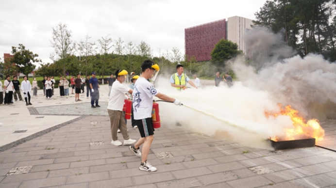 演练内容以机电类、化学类和生物类实验室可能出现的安全隐患为前提,涵盖灭火器使用、应急逃生以及安全疏散等。保卫处工作人员现场讲解了手提式干粉灭火器的使用方法,并进行灭火实地演练,随后由各位同学分别操作。同学们密切配合,积极学习实验室安全知识,演练效果突出。
