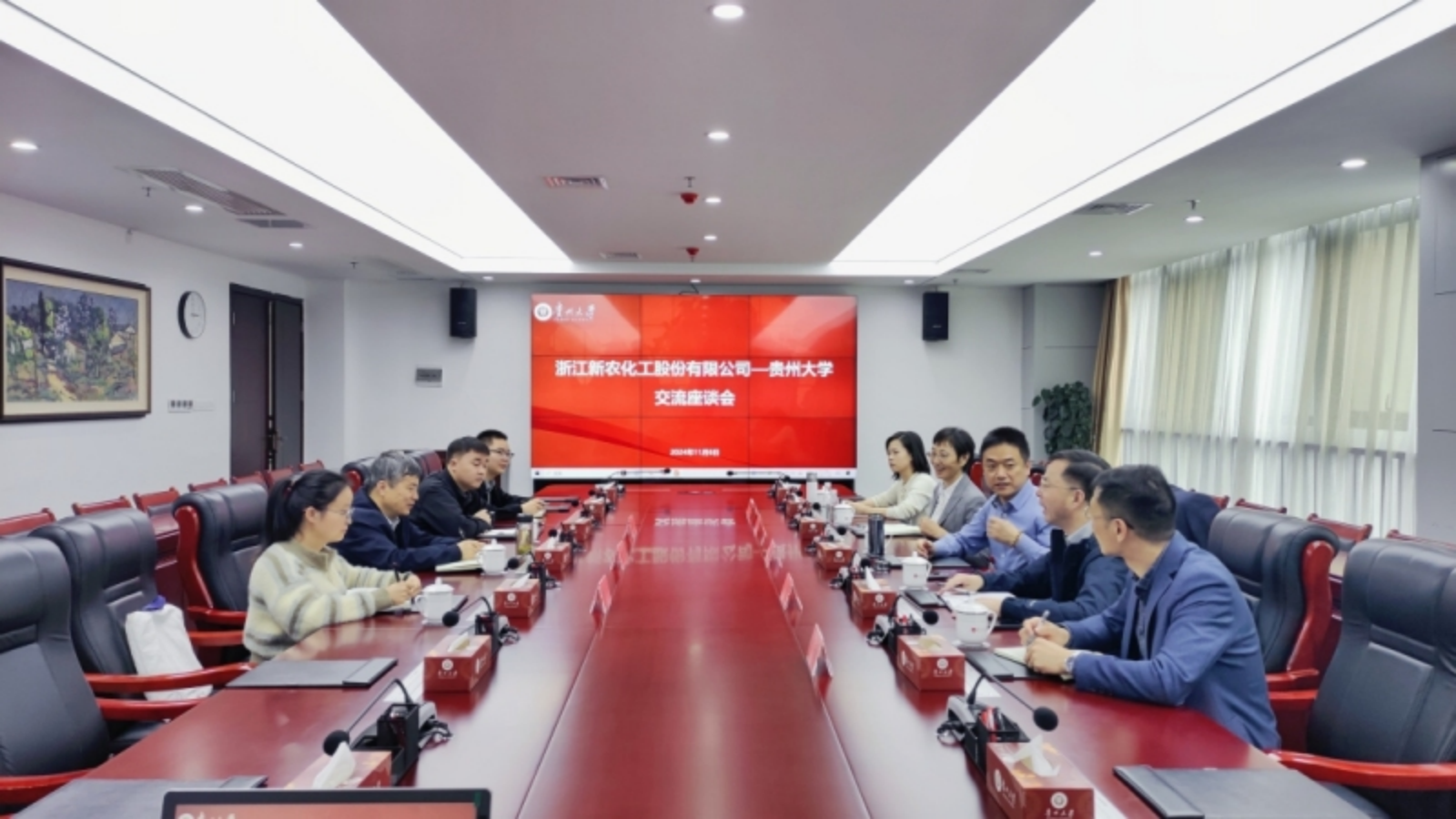 11月6日下午,浙江新农化工股份有限公司董事长、总经理徐群辉一行到我校开展交流座谈,校长宋宝安院士出席座谈并进行交流。