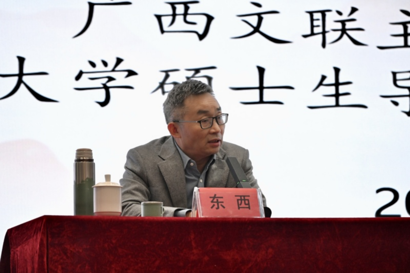 11月6日下午,“溪山论道·文科讲坛”主题讲座在我校东校区行政楼报告厅举行。广西文联主席、广西作家协会主席、著名作家东西先生举办“全国文学名家看贵州创作实践活动——‘文学的启迪’”主题讲座。副校长陈祥盛致辞,主办方相关领导出席讲座。文学院院长谭德兴主持讲座。