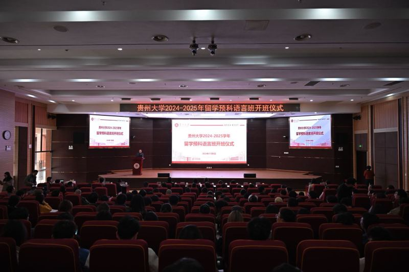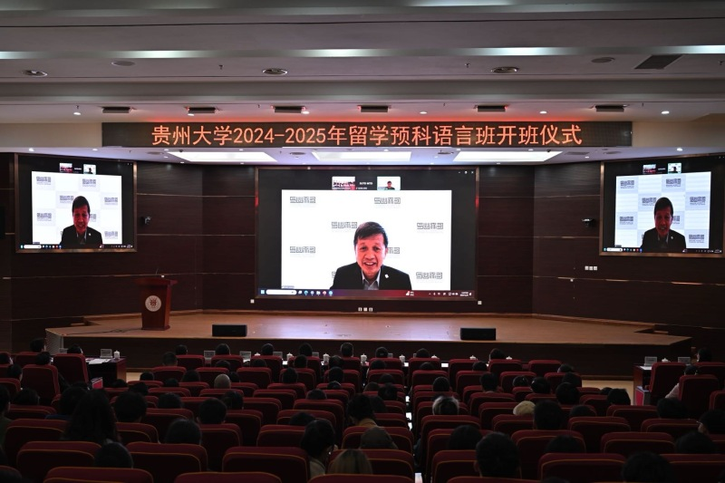 11月8日下午,贵州大学2024-2025学年留学预科语言班开班仪式在西校区贤正楼107报告厅举行。副校长王锦荣出席开班仪式,国际交流与合作处处长洪云主持会议。