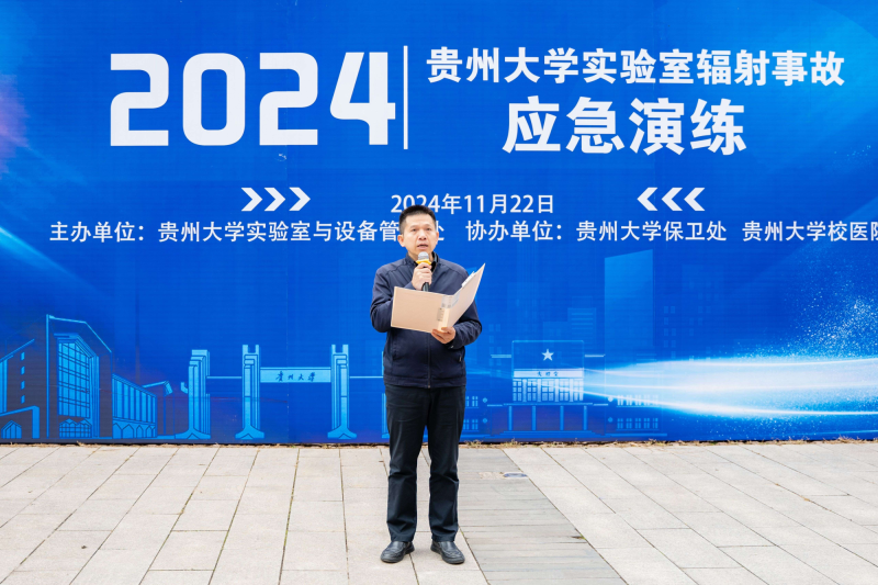 为提升师生应对实验室射线装置安全事故的能力,11月22日下午,贵州大学2024年实验室辐射事故应急演练在材料与冶金学院开展。副校长陈祥盛出席演练,实验室与设备管理处、保卫处、校医院等部门相关负责人及部分学院师生参加。实验室与设备管理处处长姚丽华任总指挥。