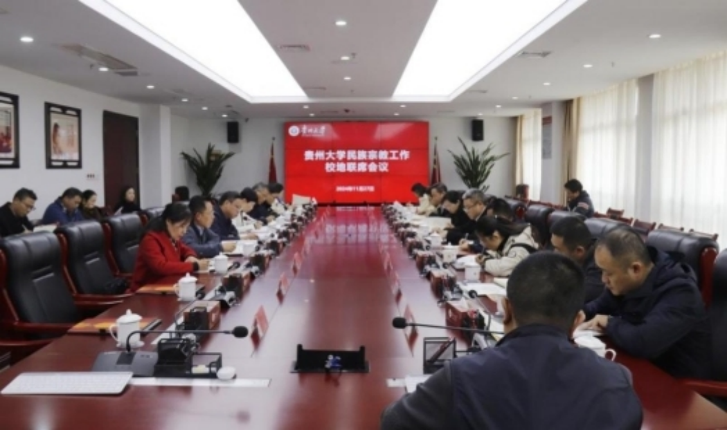11月28日下午,贵州大学民族宗教工作校地联席会议在贤正楼1号楼311会议室举行,校党委副书记张洁、副校长王锦荣,花溪区委常委、统战部部长张琳,区委统战部常务副部长张旭元出席会议,花溪区民宗局班子成员、区公安局(网安大队、政保大队)、区委网信办、溪北街道办、阳光街道办、溪北派出所、阳光派出所、松山派出所及我校相关部门和学院负责人参会。会议由王锦荣主持。