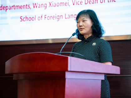 留学生培养单位代表、外国语学院副院长王晓梅发言。她代表各培养单位对留学生新生的到来表示热烈欢迎,并承诺将全力以赴为留学生提供优质的教学资源和服务保障,助力他们在贵州大学实现自己的梦想。