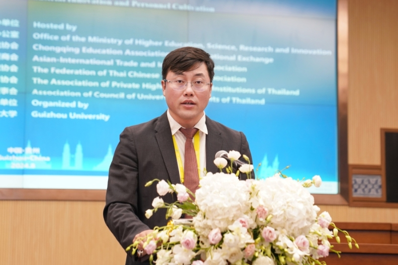 8月23日上午,中泰大学校长论坛——“产业创新与人才培养”研讨会在贵阳中国—东盟教育交流周永久会址东盟论坛厅举行。泰国高等教育科学研究与创新部办公室主任Mr.Pumpermsak Aruni,泰中教育联盟协会会长Mr.Montree Pongpan,重庆市教育国际交流协会秘书长李世玉,贵州大学副校长王旭出席。中外知名专家学者以及中国和东盟的高校代表参加会议。重庆青年职业技术学院党委书记朱毓高及泰国民办高等教育协会秘书长Dr.Manit Boonprasert主持会议。