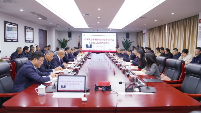 11月28日上午,贵州大学本科教育教学审核评估专家组入校评估说明会在西校区贤正楼311会议室召开。