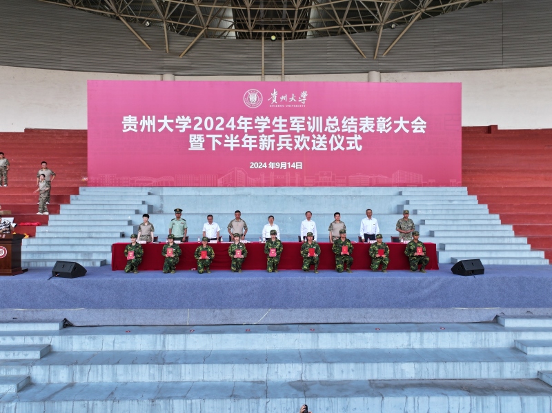 随着《中国人民解放军军歌》的奏响,贵州大学2024 年学生军训总结表彰大会暨新兵欢送仪式圆满结束。