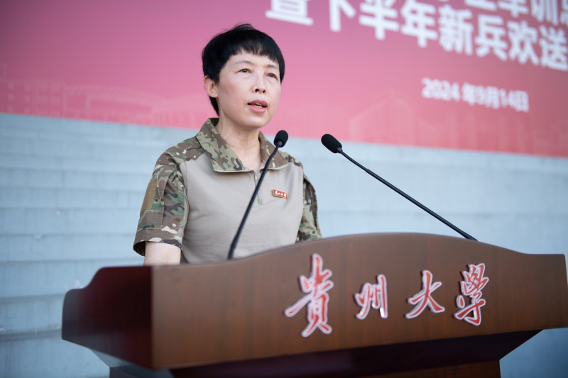 9月14日,贵州大学2024年学生军训总结表彰大会暨下半年新兵欢送仪式在西校区体育场举行。校领导宋宝安、张洁、唐本文、张大林、陈祥盛、李飞、王锦荣,武警贵州总队机动支队支队长杨满辉、花溪区人民武装部中校副部长李伟出席仪式,校党委副书记张洁主持仪式。征兵工作领导小组成员单位、各学院主要负责人、负责征兵工作的辅导员、学校应征入伍的新兵、军训师全体成员以及2024级全体本科生参加仪式。