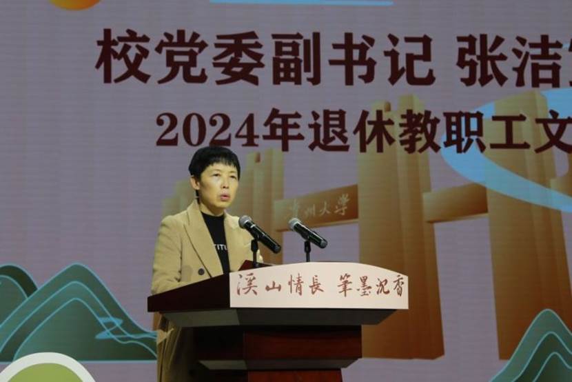 张洁宣读了贵州大学2024年退休教职工文件。