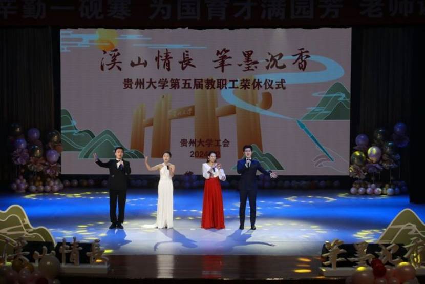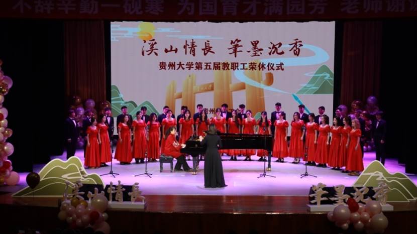 “三寸粉笔,三尺讲台系国运;一颗丹心,一生秉烛筑民魂。回顾数十年杏坛春风春雨,见证这一刻师者荣休温情,我代表学校党委、行政衷心地向每一位荣休的老师们、同志们道一声辛苦了!”杨未表示,在今年全国教育大会上,习近平总书记专门强调要做好教师的荣休工作,充分彰显了党和国家的亲切关心和深切关怀。荣休,是对过去从教生涯的总结和肯定,是教师事业发展值得骄傲的时刻和荣光。她指出,贵州大学始终认真贯彻党和国家的教育政策,支持广大教职工创新,服务广大教职工建功,依靠广大教职工发展。今天参加荣休仪式的同志,都在教学、科研、管理、服务的岗位上为贵大奉献了力量,也激励着大家肩负新时代新征程上做强贵州大学的重要使命。溪山情长,笔墨沉香,荣休教职工是支持学校建设发展的重要保护、是引领后辈进步的重要力量,希望各位老师继续关心、关注、支持学校和贵州教育事业的发展,祝愿各位老师万事皆如意。