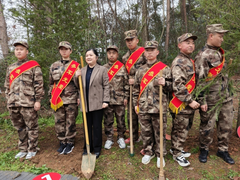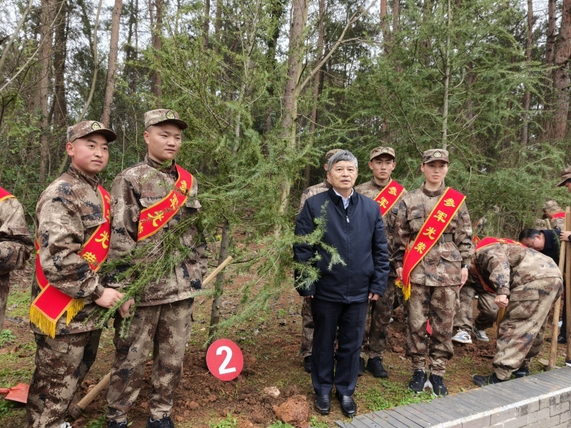 活动现场,身着迷彩服的新兵们精神抖擞,与校领导协同配合,挥锹铲土、扶苗定植、培土浇水,共同种下10株雪松。为确保树苗成活率,后勤管理处工作人员提前对土壤进行了改良,并配备专业技术人员全程指导,为植树活动的顺利进行提供了有力保障。