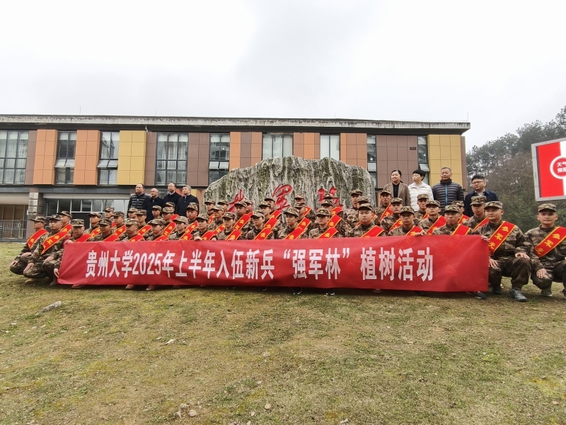 为践行绿色低碳发展理念,实现国防教育与生态文明教育实践活动深度融合,持续巩固绿色学校创建成果,3月13日下午,贵州大学2025年上半年入伍新兵植树活动在西校区“强军林”举行。校领导杨未、宋宝安、张洁、唐本文、张大林、李飞、王锦荣、陈艳波、潘煜,花溪区人民武装部副部长李伟出席活动。学校相关部门负责人,48名新兵及部分家长代表参加本次植树活动。